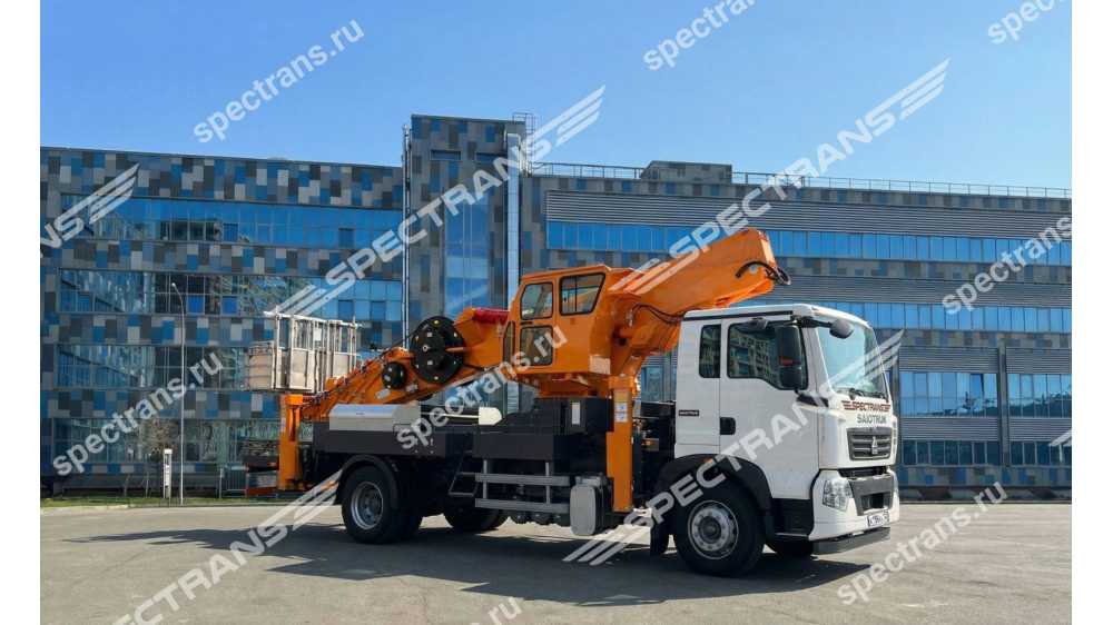 Автовышка позволяет выполнять работы на высоте до 45 метров. Данная установка - промышленный, очень маневренный подъемный механизм, предназначенный для выполнения широкого спектра работ. Преимущество её в том, что четырех-секционная телескопическая стрела позволяет точно и аккуратно производить работы по краям зданий и сооружений.